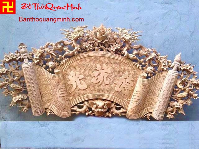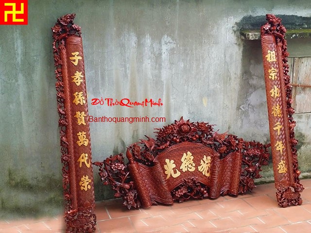 Mẫu cuốn thư gỗ gụ lõi thờ gia tiên sơn pu dát vàng ta 9999.