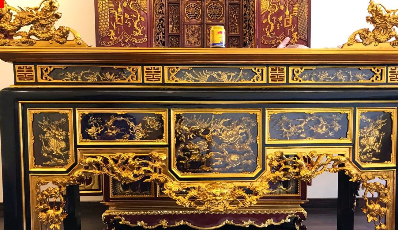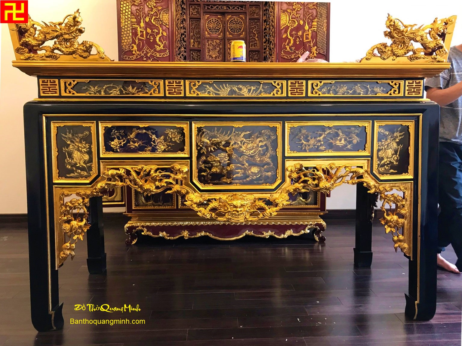 Bàn thờ Tứ Linh đẹp sơn son thếp vàng, thếp bạc phủ hoành kim