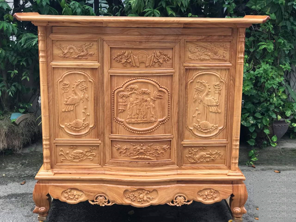Kích thước tủ thờ: Dài 1m27 x rộng 81 x cao 1m27 hoặc Tùy theo không gian thờ cúng và các cung trong thước Lỗ Ban mà chọn sao cho phù hợp với phong thủy và mĩ quan.